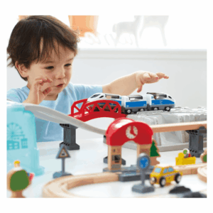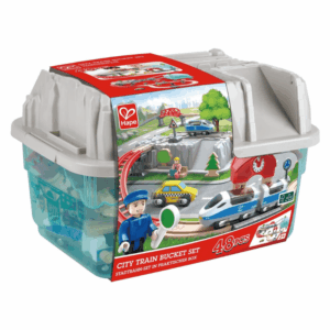 Hape City Train Bucket Set 48-Piece Wooden Railway Train Set