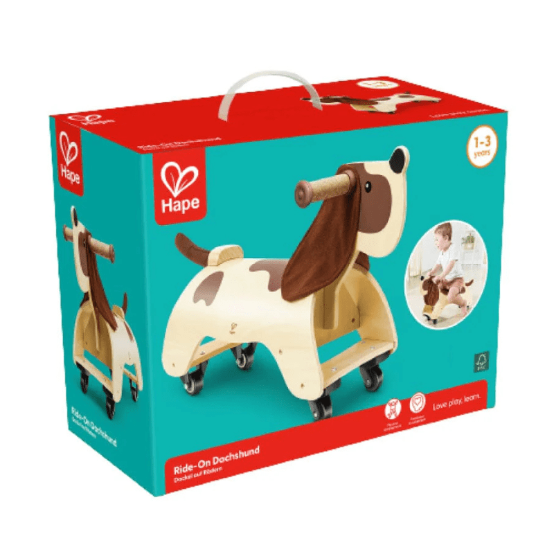 Ever wanted to ride upon a dog? Well with this wheely dachshund, you can ride with your favorite furry pal! This pup also comes with soft, cork handles, textured, corduroy ears, and four wheels that can spin at 360° so you can ride in any direction. This wheely dachshund is the perfect first ride-on toy for younger children. Set up race tracks or maneuver exercises around the house, garden, or even on the road, just make sure it’s safe!