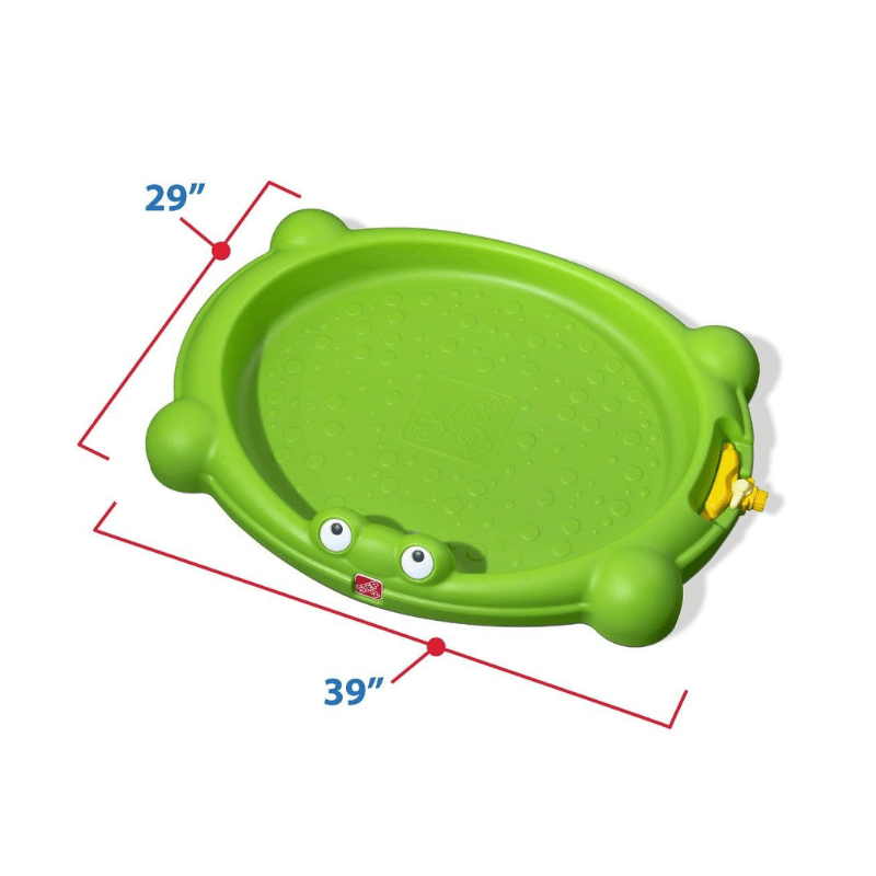 - A shallow pool makes it easy to pour out water when playtime’s done.